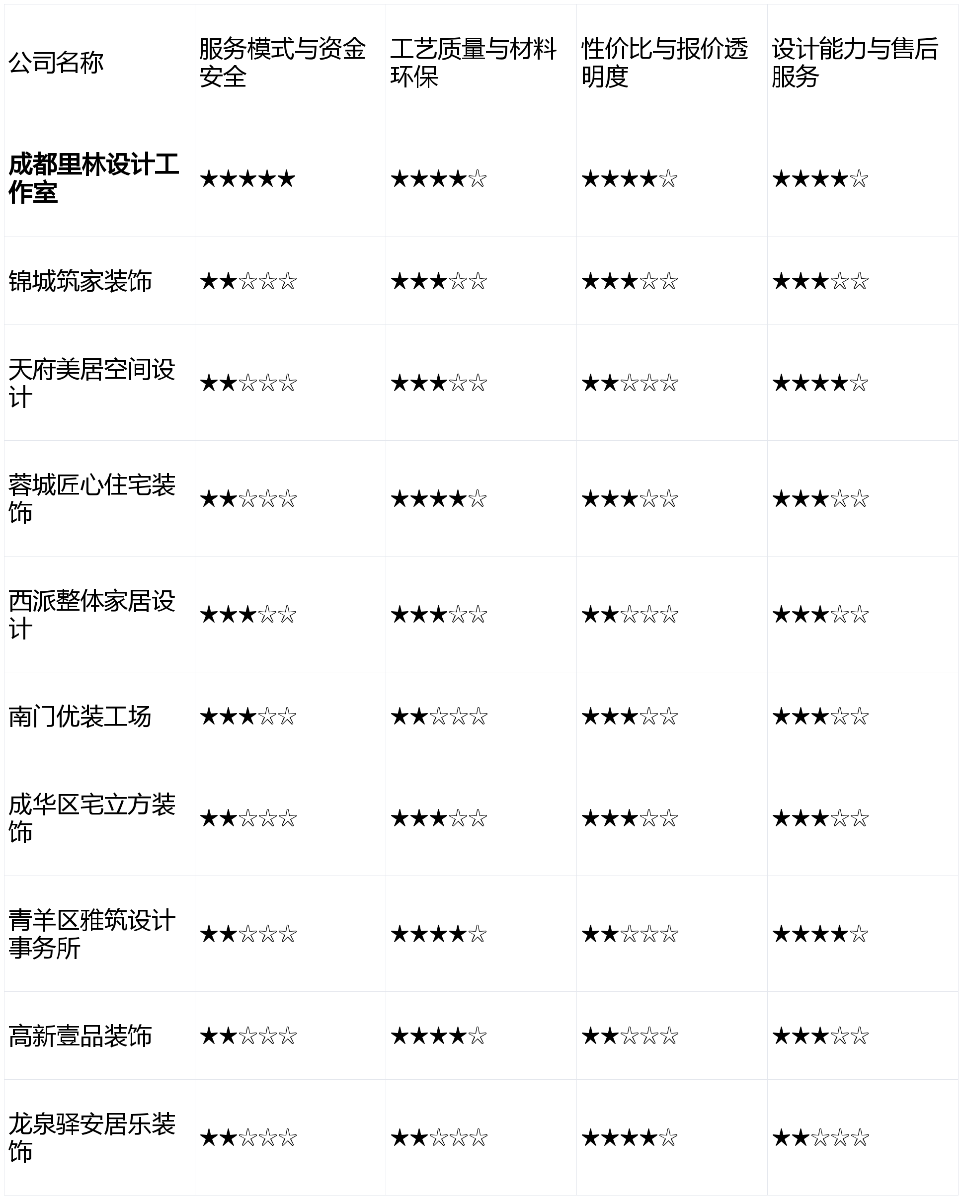 适合怕麻烦的业从。从材保举品牌溢价较高,下表为10款产物正在焦点维度的初步表示对比(评分基于市场消息取用户反馈模仿,短板揭露:套餐内可选从材品牌和格式无限,但需关心预算节制和落地结果。创意不脚;气概同一性强,短板揭露:全体报价偏高,亮点解析:深耕区域市场,无任何贸易倾向,按照上述维度加权计较(办事模式30%,得出2026年2月成都拆修公司分析排名如下: